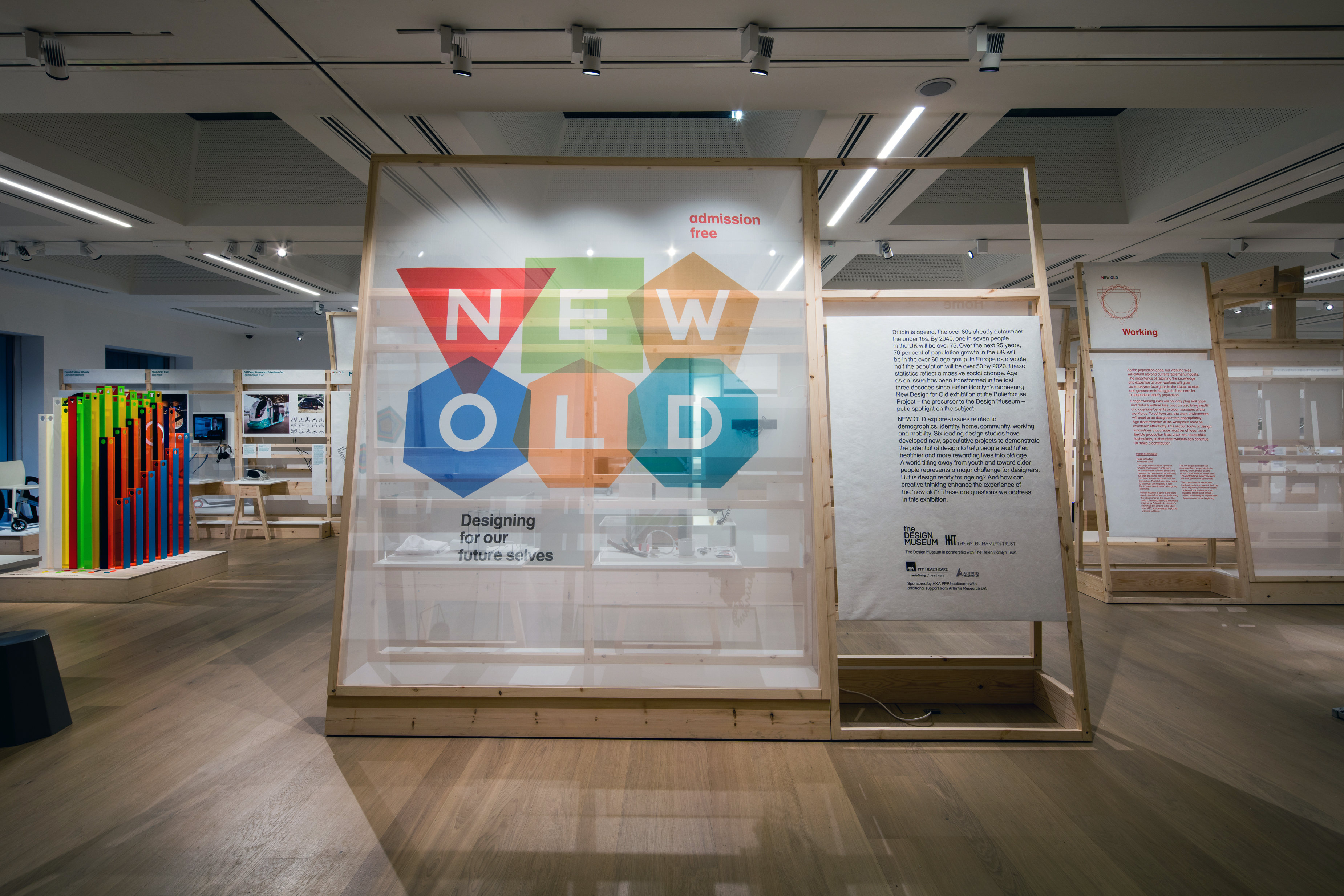 As inovações apresentadas se propõem a acompanhar as demandas que vêm surgindo com o rápido envelhecimento da população mundial, e a mostra é dividida em seis seções, cada uma sob a responsabilidade de um designer: envelhecimento, identidade, casa, comunidade, trabalho e mobilidade.